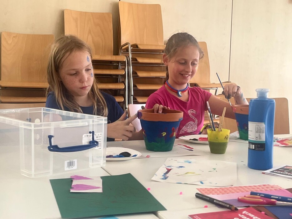 In dem Ferienbetreuungsangebot haben Kinder die Möglichkeit, ausgelassen zu spielen, zu basteln und zu toben. Es wird Kinderschminken, Perlen fädeln, Seilspringen, Malen, Fußballspielen, Pedalo fahren und vieles mehr angeboten!