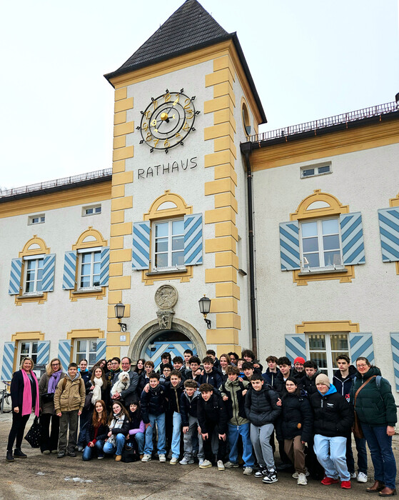Schülerinnen und Schüler aus unserer Partnerstadt Chamalières besuchten am 5. Februar 2026 das Rathaus. Erster Bürgermeister Michael Müller und Anita Zwicknagl (Fachbereichsleitung Kultur und Zweite Vorsitzende des Partnerschaftsvereins) begrüßten die Gruppe herzlich.