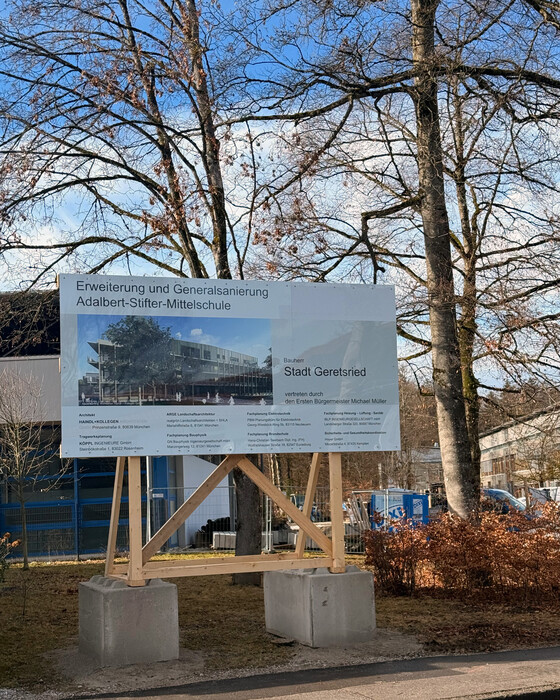 Es ist eines der bedeutendsten Bauvorhaben der kommenden Jahre: Die bisher auf zwei Standorte verteilte Mittelschule soll am Schulzentrum in der Adalbert-Stifter-Straße zusammengeführt werden. Dazu wird die Adalbert-Stifter-Schule erweitert und generalsaniert. Am 12. Februar 2026 wurde die Bautafel aufgestellt.