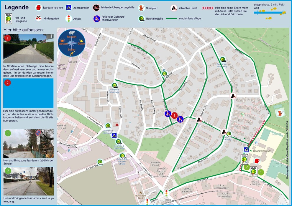 Die Schulweg-Routen dienen der Stadt Geretsried als Grundlage für die Planung zukünftiger kommunaler Straßenbauprojekte. Wir legen hier besonderen Wert auf Verkehrssicherheit und Instandhaltung der Straßen und Wege.